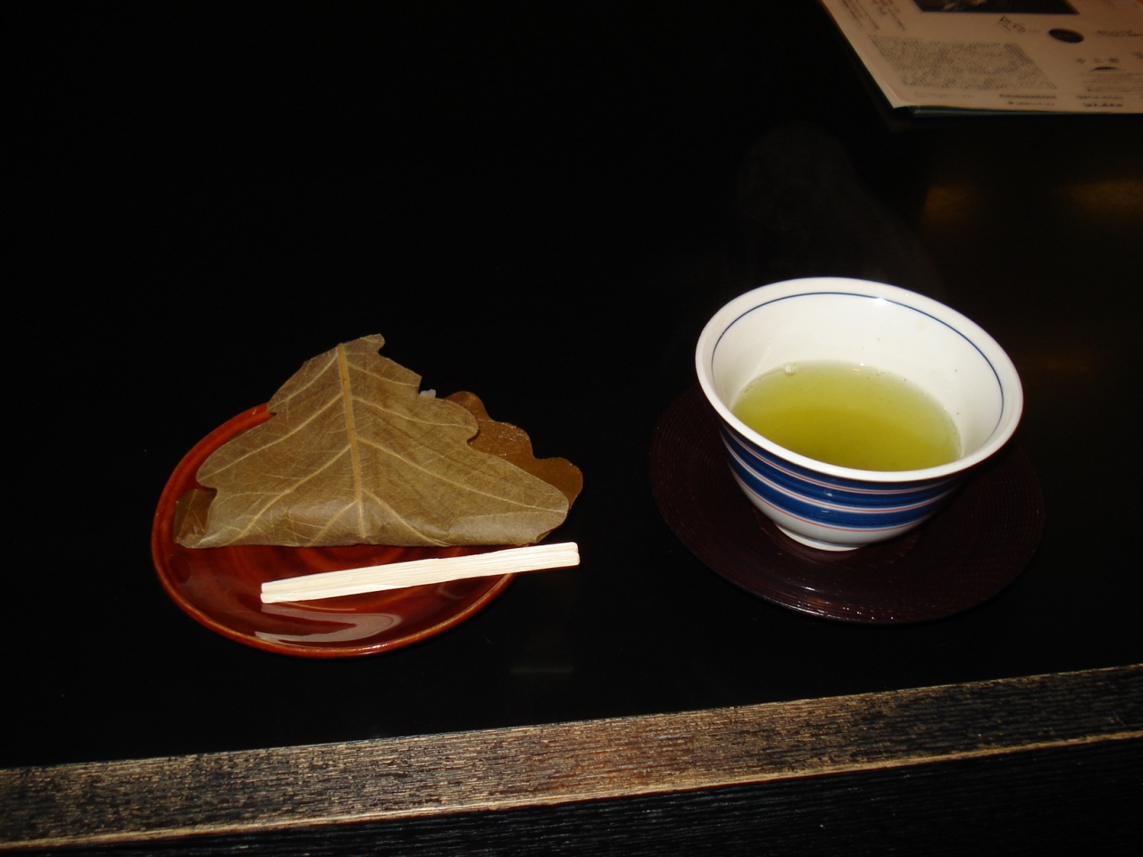 こちらには店内にイートインコーナーがあり、そこでお茶をいただきながら(サービスです)、購入した草餅や柏餅などいただきました。