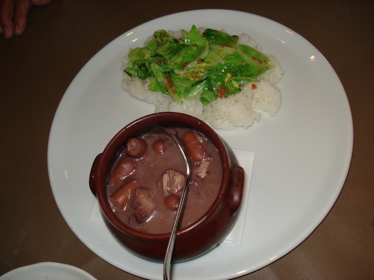 友人?はここの名物?のブラジルランチ(イタリアンで何故?と思うが)この料理は豚肉と腸詰めを豆のソースで煮たシチュー風。