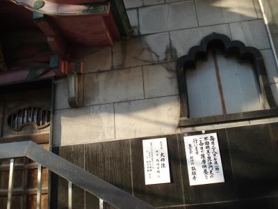 像とは反対にお寺自体は質素というか少々くたびれた印象。入り口も閉じられていましたが、「毎月28日は護摩供養があります」と張り紙がありました。