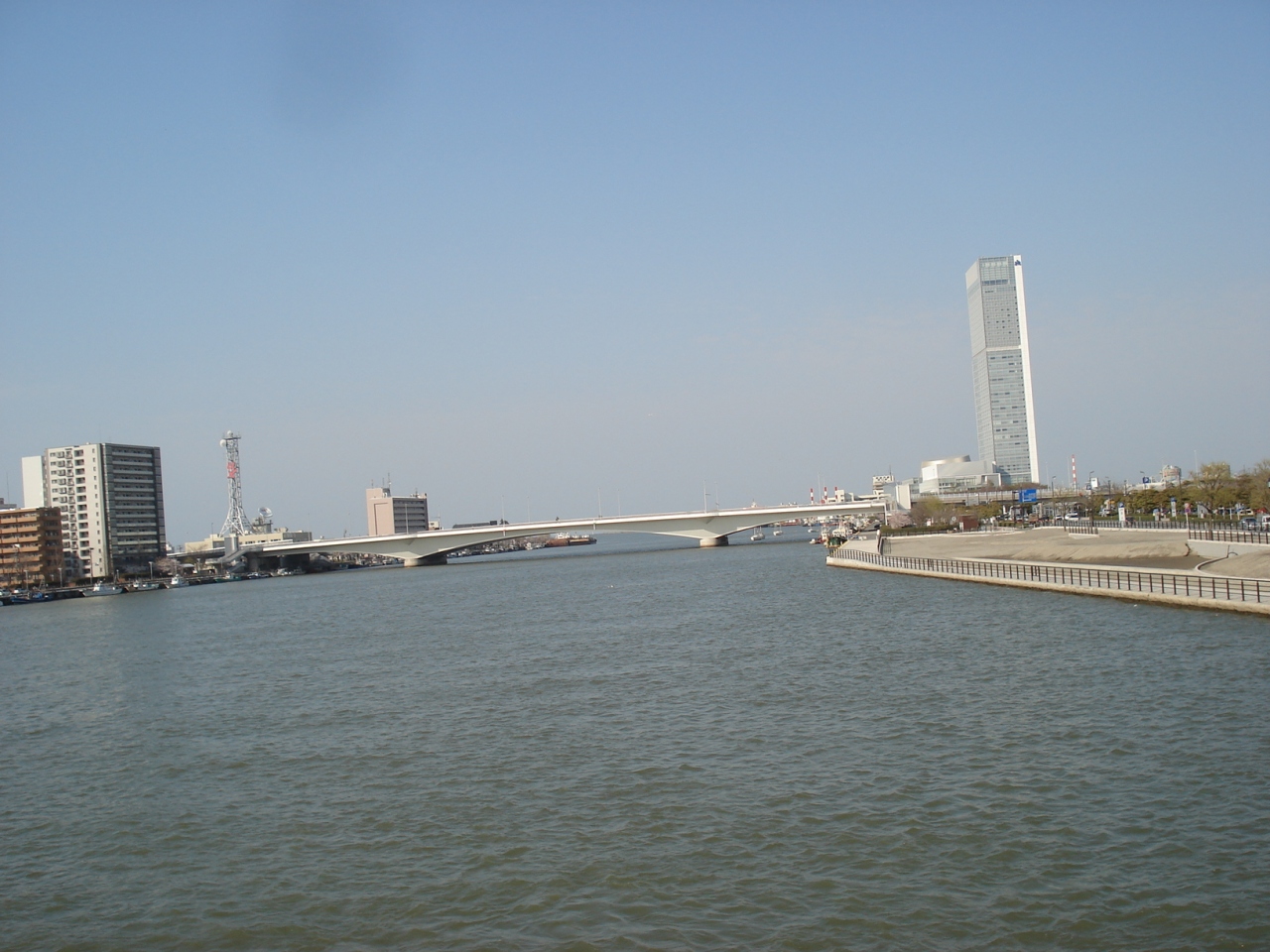 整備されたウォーターフロントの複合一体型ビルの総称「朱鷺メッセ」。31階建ての万代ビルと新潟コンベンションセンターがある。川沿いに建つ31階の万代ビルは遠くからも良くながめられ、この地でシンボル的存在。