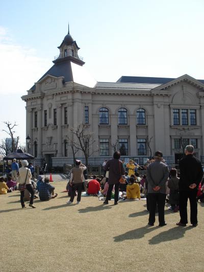 建物前の広場では土曜日と言うこともあり音楽サークルの発表会?が行われていて家族連れなどが集い、桜も咲いた中、春の1日を楽しんでいた。