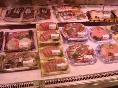 この市場の中でも、角上は知名度が高い。なるほど店内を歩くと鮮度の良い刺身などがお安い値段で売られていた。東京の2/3くらいの値段だなーと思った。