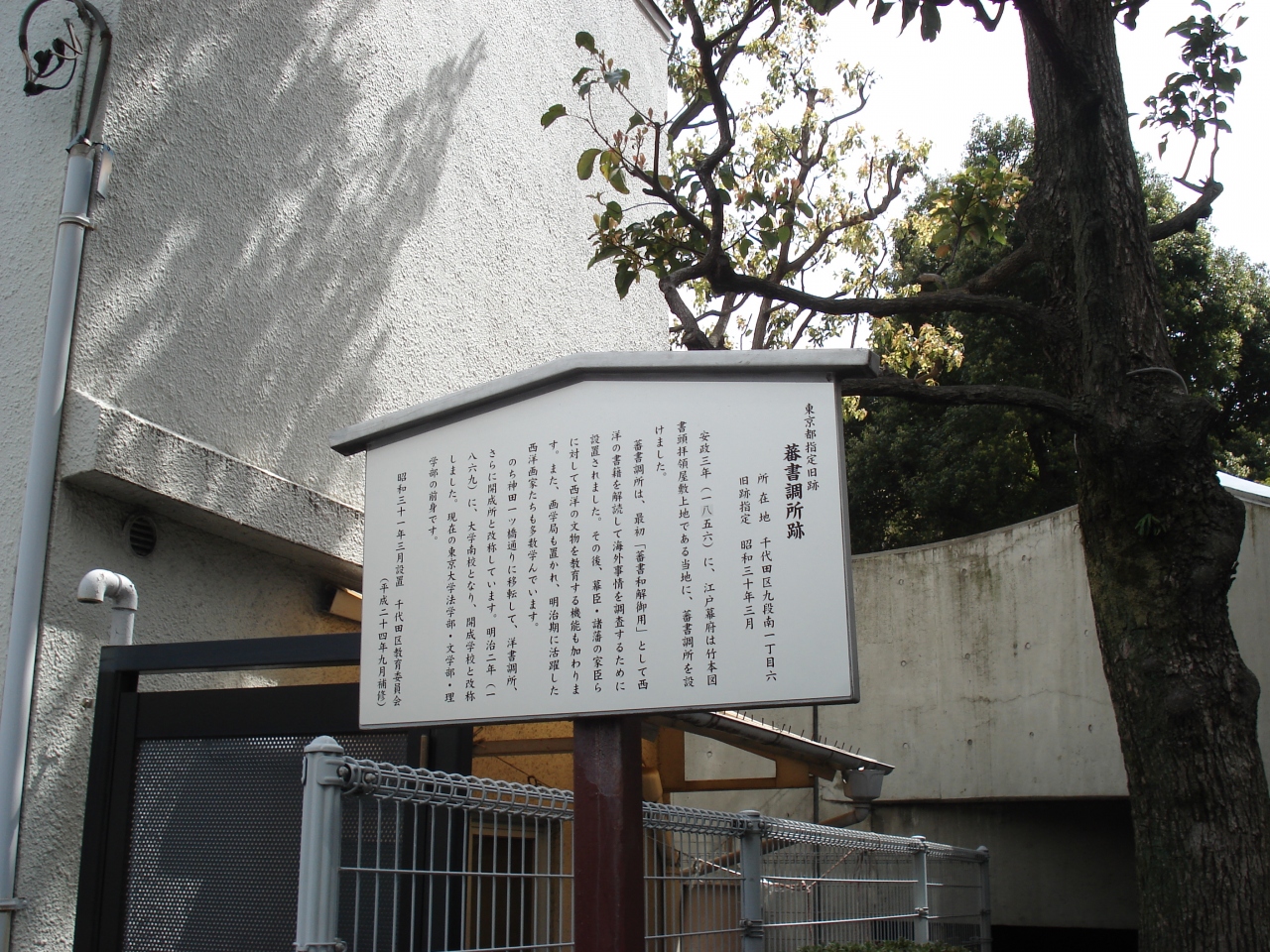石柱があり、「蕃書調所跡」と書かれていました。そのとなりに立て札がありそこに説明がありました。