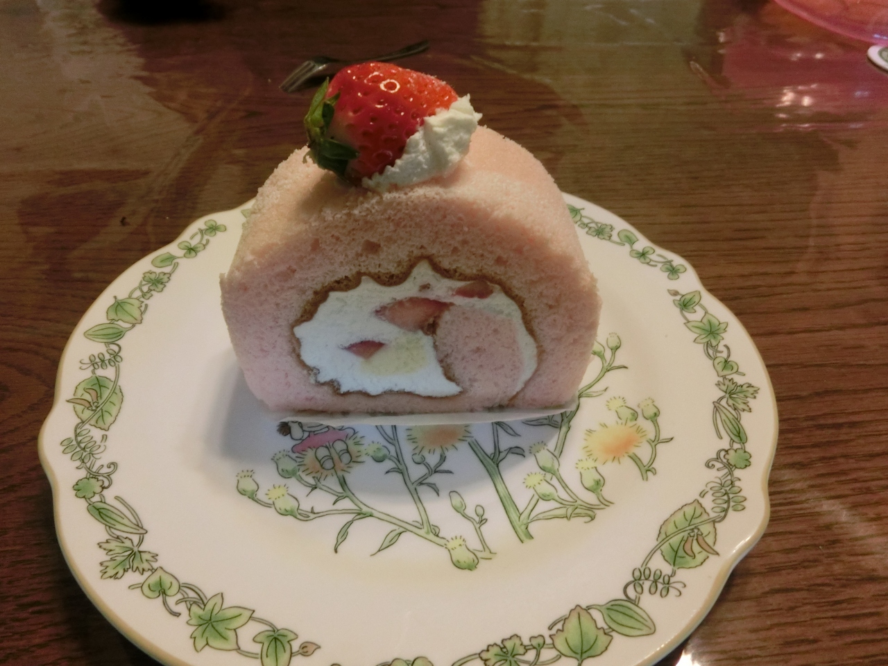 今日はたまたまイチゴケーキフェアーをやっていたのでそれを2つ。桜色のロールケーキにイチゴがのって春らしい。