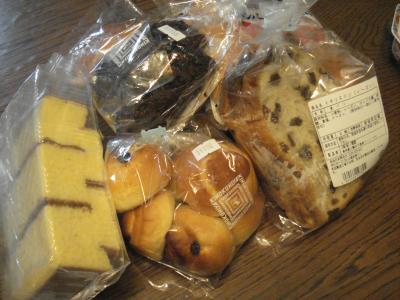 レーズンイギリス食パン(三枚)、ハンバーガーパン(四個入り)イングリッシュマフィン(四個入り)ホワイトブレッド一斤、アメリカンスイートロール(六個入り)、サブマリン一本、シュヴァルツトブロート1/2(これは150円)カステラ(300円)