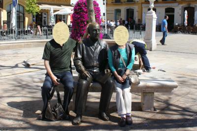 広場にはピカソのベンチがありました。ベンチの真ん中にピカソの像が座っていますので並んで記念撮影が出来ます。