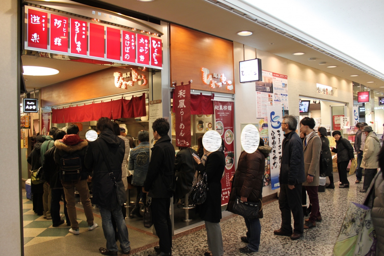 有楽町の駅そばの交通会館内の地下にある。「富山のアンテナショップ」に行ったとき、隣接するこの店の行列を見た。午後1時過ぎだったのに。