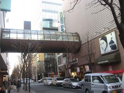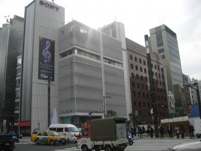 ソニービルの東裏の道で新橋方向に続く道。昼間はあまり目立たない感じの通りですがいくつかのブランドショップはあります。夜はネオンが光る飲食店街として賑やかになるようです。