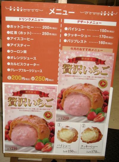クリームの種類がいろいろありますが、やはりオーソドックスなバニラが好み。今日はドーナツ型のパリブレスト(1個160円)を。普通のシューよりクリームが少な目なのでカロリーを気にしている向きには良い選択だと思って。バニラビーンズの香りがよく、やっぱり甘いものはおなかだけでなく、気持ちまで和ませますね。- 旅行時期