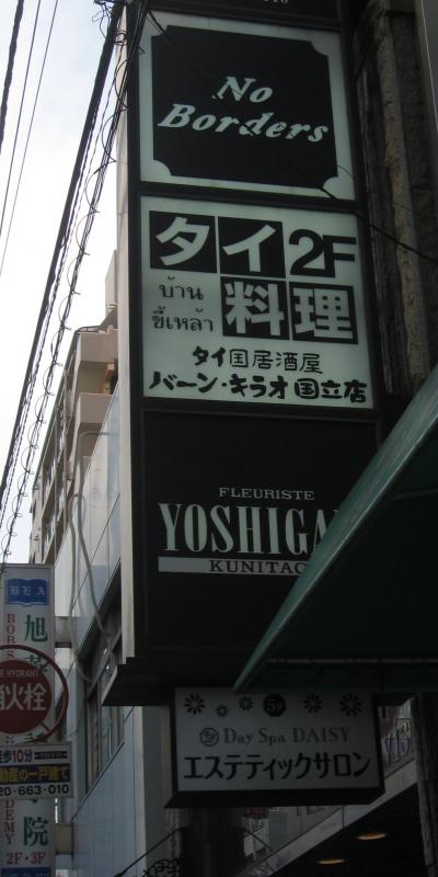 国立駅南口を出たら、ロータリーから東方向に斜め出ている道が旭通り。この通りを1~2分歩くと右側の2階にある店がここ。