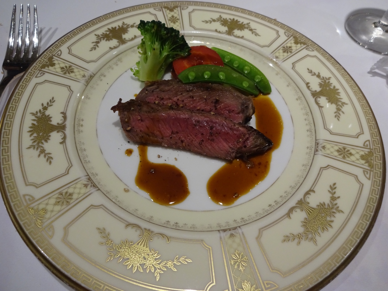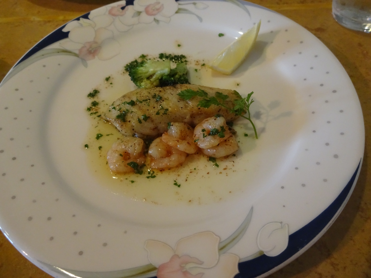 私たちは魚のカルパッチョ、ステーキ、デザートとコーヒーという組み合わせ。
