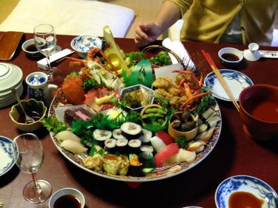 食事はとても豪華。皿鉢とカツオ、お寿司と食べきれないほどで、それぞれ絶品でした。器も素晴らしく目でも楽しみました。