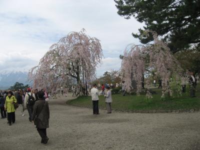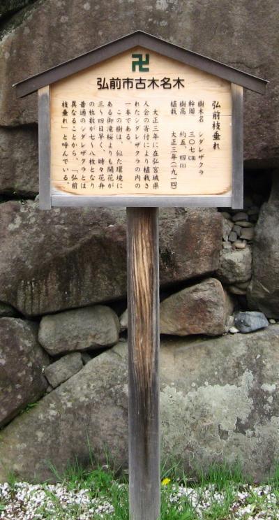 ソメイヨシノは満開を過ぎて、お堀端に一斉に咲くサクらの姿は見ることができなかった。でもしだれ桜などがまだきれいだったし、雪のかぶった岩木山の勇姿を見ることもできたのでそれなりに満足できた。