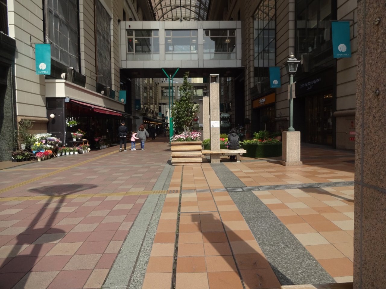 お洒落なアーケードになっていてここはイベント会場二もなったり様々な催しが行われて特に休日は賑やかになる。