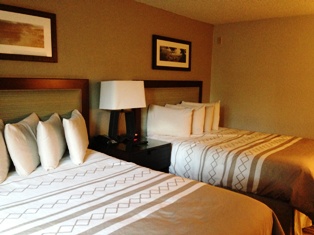 二階建てで内廊下の両側に部屋がある建物。各建物に製氷機と飲み物の販売機はあるようです。一泊のみだったせいか、到着が遅かったせいか、駐車場ビューの一階でカーテンを開けることができない部屋になってしまったのが残念。(ただ私たちは荷物がすごく多かったので結果として一階でよかった)HPの部屋の写真のイメージよりは「ロッジ」っぽい雰囲気でした。- 旅行時期