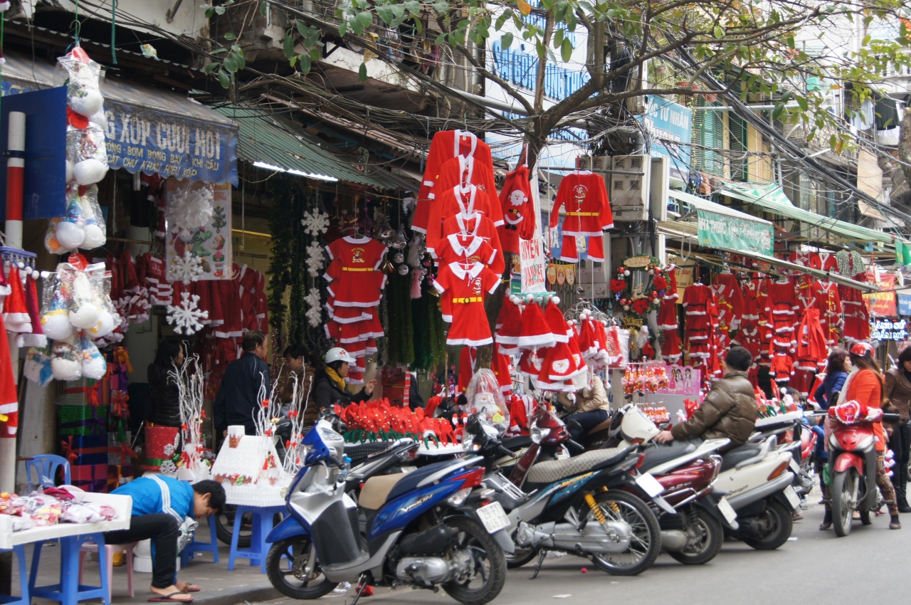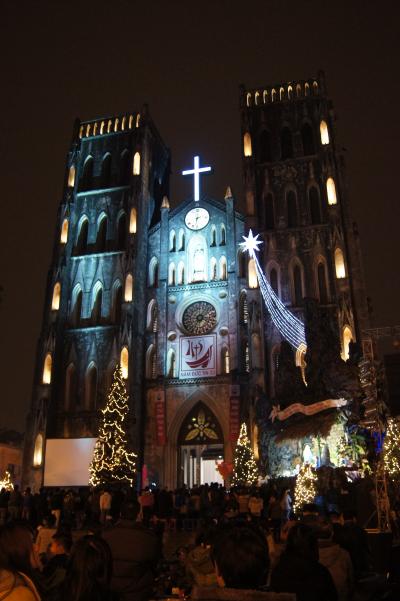 クリスマスの前後の昼と夜に見に行きました。この近くには、ショップやカフェ、それにマッサージ店なども多く、観光客も多くて町歩きには便利な所です。ホアロー収容所までは歩いて10分、水上人形劇場までは15分程度でしょうか。