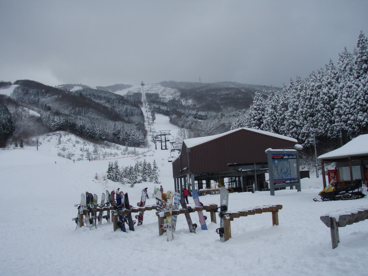 国際や恐羅漢に比べると、新しくて洒落た感じ。食事のメニューもまずまずあって、いいですね。コースも広くて滑りやすい。難点は、ちょっとリフトが遅いかな。しかし、この辺のスキー場はみんなこんなものです。土曜日に行ったけど並ばなくて乗れました。足のせがないのが、ちょっと残念。