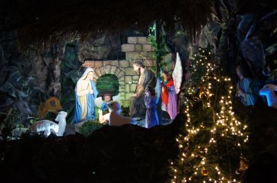 左側の裏手から入れると旅行誌に書かれていましたが、柵に鍵がかかっていて入れませんでした。ステンドグラスを見たかったのに残念です。クリスマスのため、人形のオブジェが飾られ、照明も色が変わってきれいでした。- 旅行時期