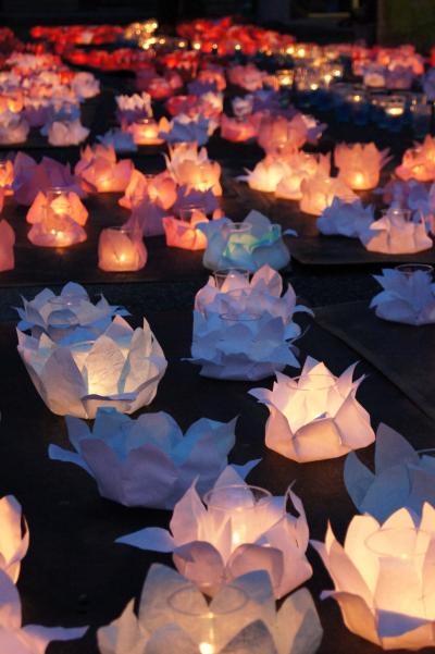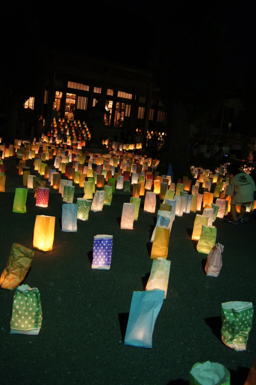 毎年8月9日に寺町周辺のお寺や道路に紙などで作られた灯篭が並びます。コンクールも行われていて、工夫した灯篭もあります。中津の寺町付近は寺町と呼ぶだけあって、お寺が多く、この日は同時に「七観音参り」が行われており、7つのお寺に自由に入ってお参りができます。日頃も入れるのかも知れませんが、檀家でもないのに普通は入りにくいですからね。福沢諭吉の旧居では盆踊りや催しが行われていました。あんまり派手なお祭りではなく、ちょっと夕涼みに行こうかっていう祭りです。