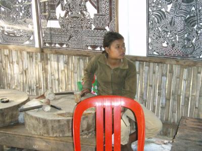 ロリュオス遺跡群プリヤコーの近くにあります。孤児たちが牛の皮を加工して影絵で使われる人形や風景を作って販売しています。普通のツアーでは行きませんので、自由日に車をチャーターして行きました。子供たちを自立させようという施設です。お土産には充分なすばらしいできです。安いのでたくさん買いました。最後には子供たちと記念撮影してくれます。