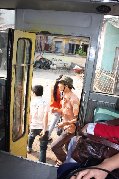 ローカルバスに乗り込む。チケット売りのおばさんは、強気すぎて全く値下げ...