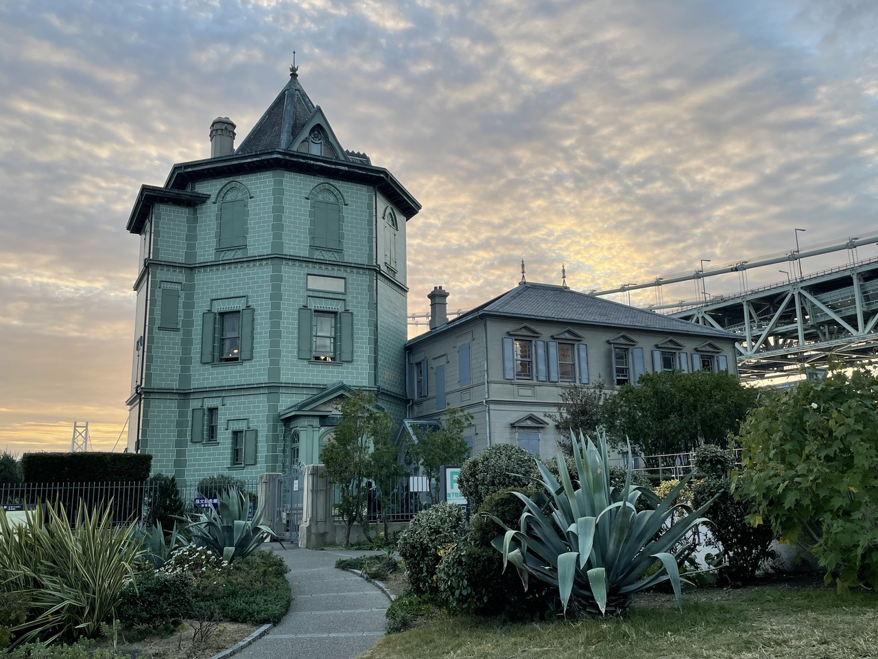 大正時代に、華僑の呉錦堂が建てた別荘を移築したものだそうです。八角形の建物は洋館風です。1913年には孫文も訪れており、現在では孫文の資料館になっています。すぐバックには巨大な明石海峡大橋が横たわります。