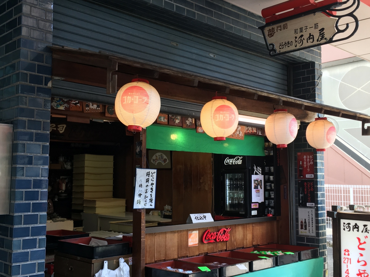浅間神社の門前「夢門前」沿いにある老舗の和菓子屋で店頭で名物どらやきを販売しています。あっという間に売り切れてしまいます。店頭には次回の焼き上がり時間が出ていました。生地はふっくら、きめの細かいどらやきです。