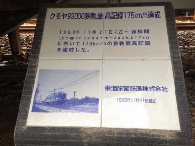 東海道線六合駅にある小さな記念碑でさがさないとわかりません。1960年11月21日、六合駅付近で当時の狭軌世界最高速度である175km/hを記録した記念碑です。当時はまだ六合駅はなく藤枝~島田間と表記されています。