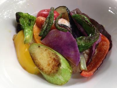 鎌倉二階堂、通りからひとつ入った隠れ家的なカフェレストランです。自宅の一部のような店内は開放的で緑豊かなガーデンビューです。真夏は店内でも暑いぐらいでした。見栄えもいいカラフルな焼野菜をのせたどんぶりをいただきました。