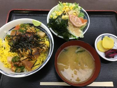 沼津の海鮮食堂「山正」の隣りにある別館です。沼津駅南口より徒歩10分ほどの距離、昼前でしたが順番待ち。山正で受付して順番に案内されようで、離れに通されました。カウンター席で海鮮丼をいただきました。メニューは本店と共通でした。