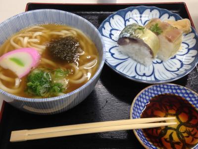 出町柳のアーケード商店街にあるすし・麺類の食堂です。町の食堂といった佇まいですが、鯖寿司の有名店で昼過ぎでも行列でした。鯖寿司2カンとうどんのセットをいただきました。肉厚の鯖は酢飯になじみます。さっぽりうどんとの相性もよいです。