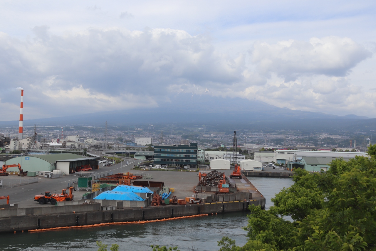 吉原駅から徒歩10分ほどの港を見下ろす丘の上にある公園です。展望台から田子の浦港を一望、晴れていればバックに富士山を眺めることができます。このあたり、東海道の元吉原宿で、見付もあったそうです。吉原宿は度重なる津波などで内陸部に移ったそうです。園内には大きな仏舎利塔もあります。