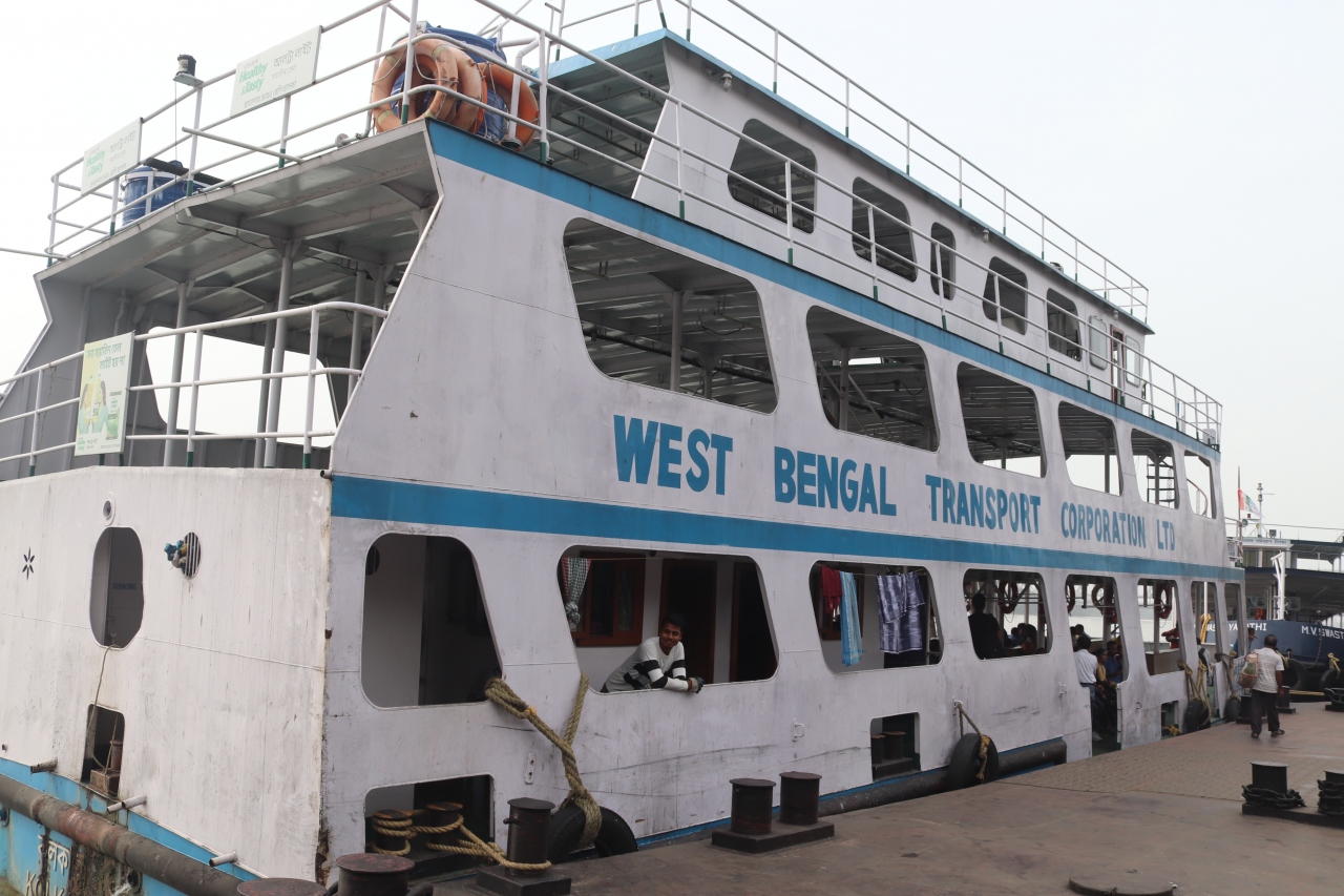 コルカタの町を縦断する大河、フーグリ―川のフェリーです。いくつかの航路がありますが、西側はハウラー駅に発着します。乗船したのは、BBD.BAG駅に近い船乗り場からハウラーに向かう便です。およそ10分ほどの船旅が楽しめました。