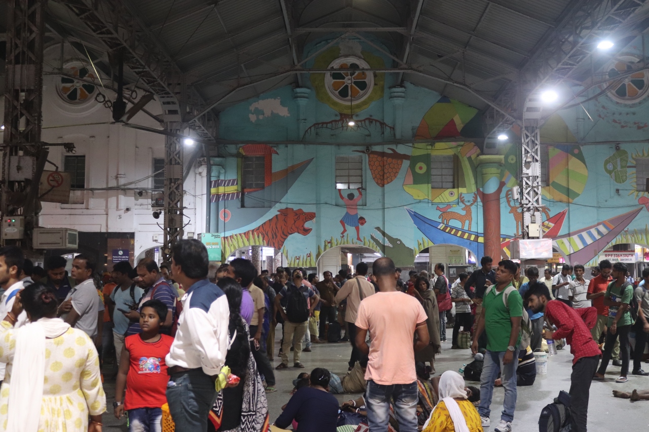 コルカタの第2のターミナル駅です。行き止まり式のホームが並ぶ巨大な駅構内は常に混雑しています。壁面には大きな絵が描かれており、雰囲気は日本の上野駅のようでした。ここからニュージャルパイグリまで夜行列車を利用しました。
