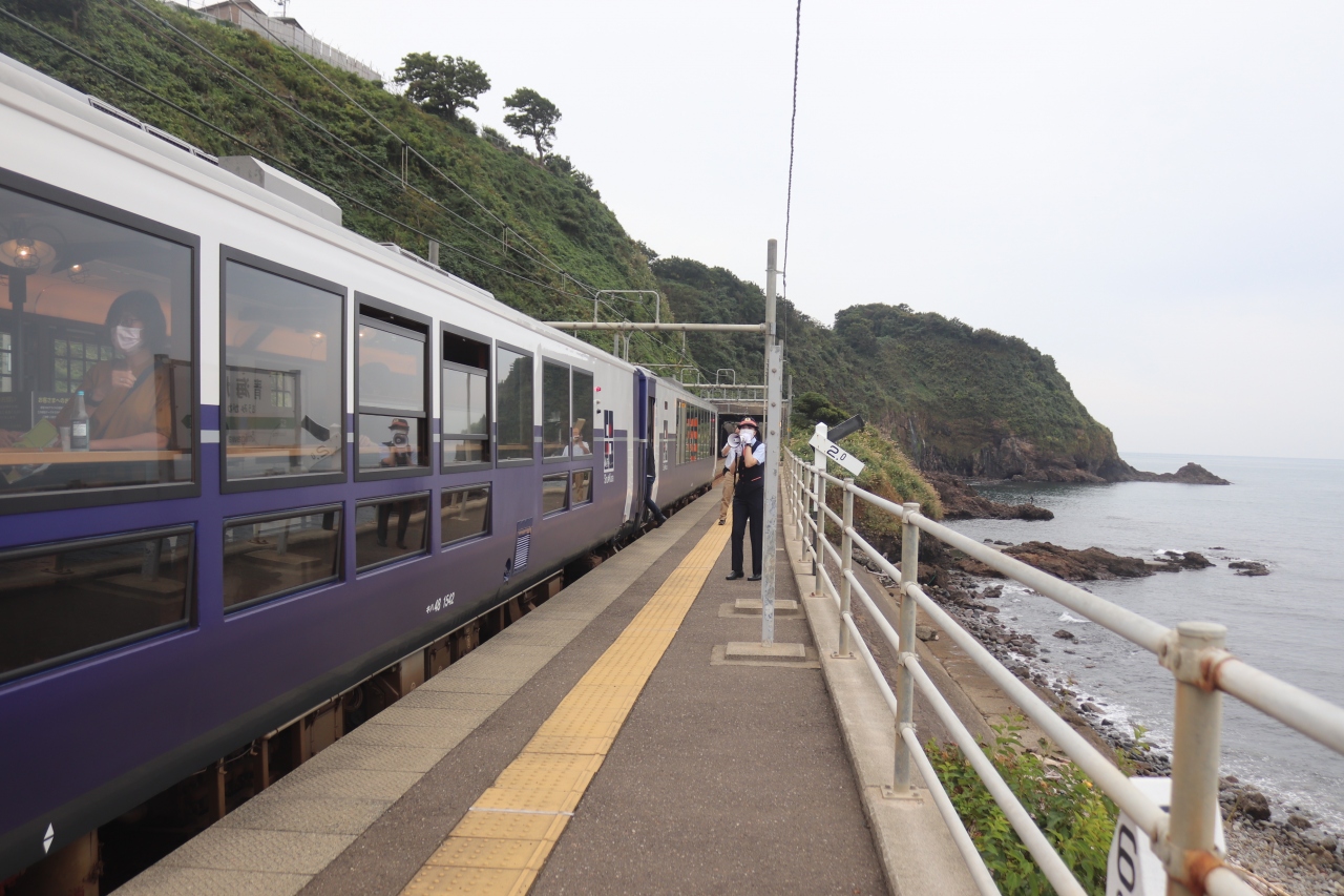 上越妙高と新潟県内各地を結ぶ観光列車です。テーマは日本酒で県内各地の日本酒のふるまいがあります。また2号車のイベントスペースでは、ジャズの生ライブが開催され、日本海の車窓を眺めながら、楽しむことができます。