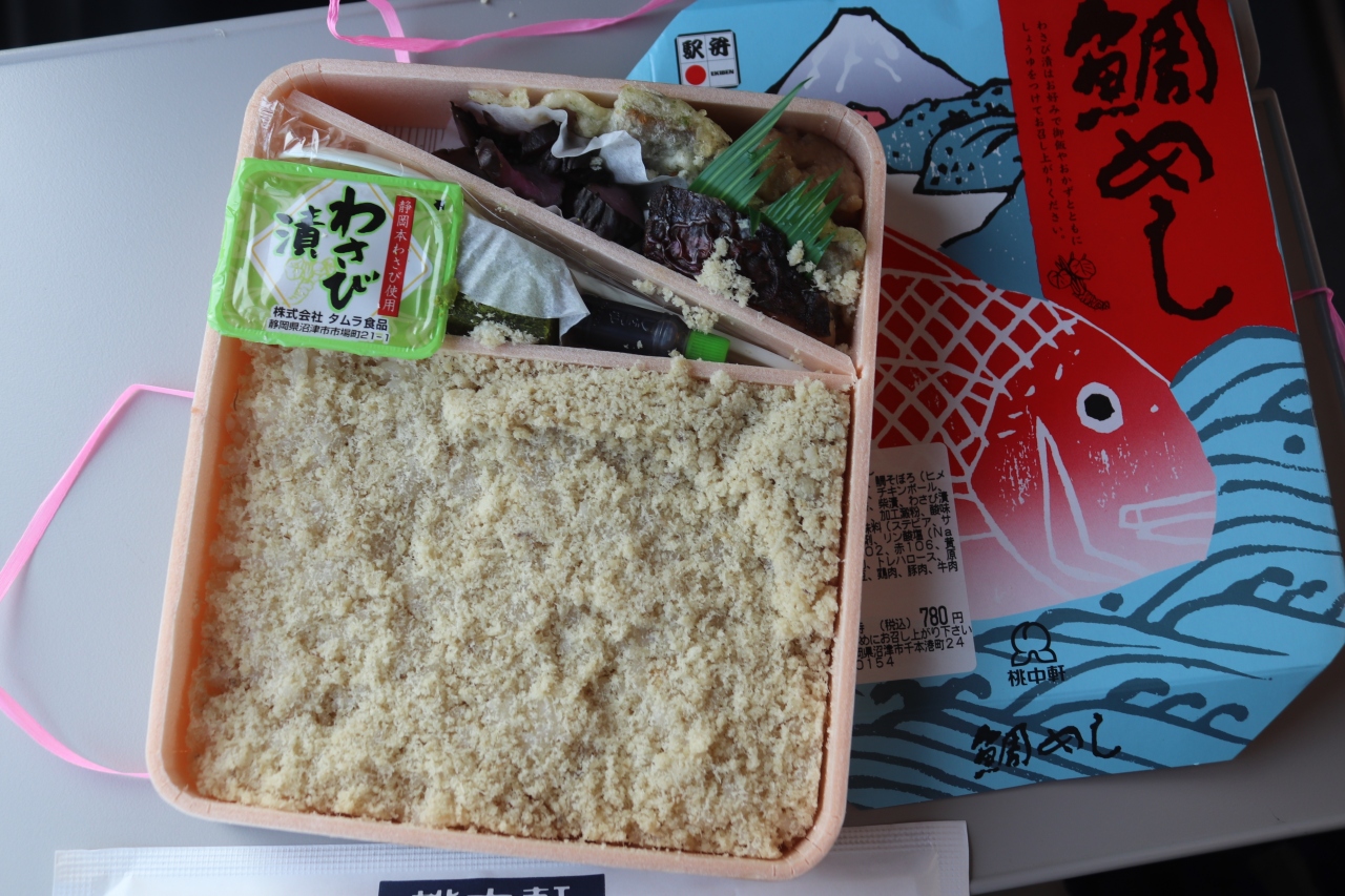 沼津の駅弁業者です。三島、沼津に駅弁売店を持っています。三島駅は南口改札外にあります。海鮮系のメニューが中心ですが、一番人気は「港あじ鮨」で3種類の鯵寿司が入っています。本わさびもついており、おろしていただきます。もうひとつ、静岡の駅弁の定番の鯛めしです。