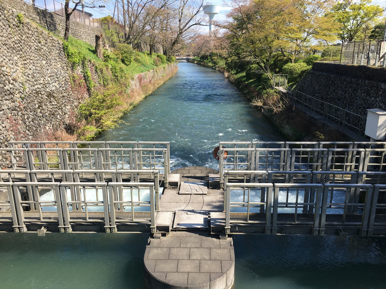 羽村にある多摩川の取水堰でここから玉川上水がスタートします。すでに桜は終わっていましたが、桜の名所です。玉川上水を作った玉川兄弟の像があったり、ちょっとした公園になっていますが、堰の施設自体、土木遺産に認定されています。