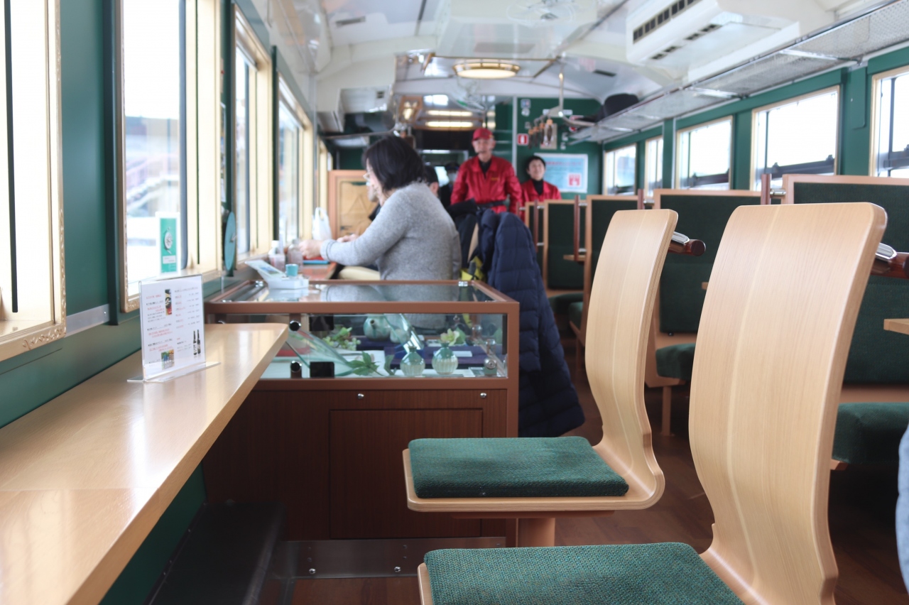 氷見線と城端線を走る観光列車です。1両しかないので、土日で交互に運転されています。最大の特徴は車内で富山湾の寿司がいただけること。寿司職人が乗車し、その場でに握ります。氷見線では雨晴海岸の富山湾を眺めることができます。