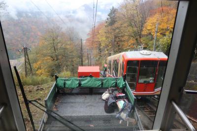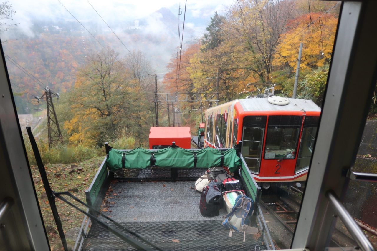 立山黒部アルペンルートの立山側からのトップバッターです。立山駅と美女平を結びます。大型のケーブルカーですが、山岳ロープウエイらしく下の立山方に荷物車が連結されています。混雑時など大きなリュックサックなどはこちらに置くことができるようです。