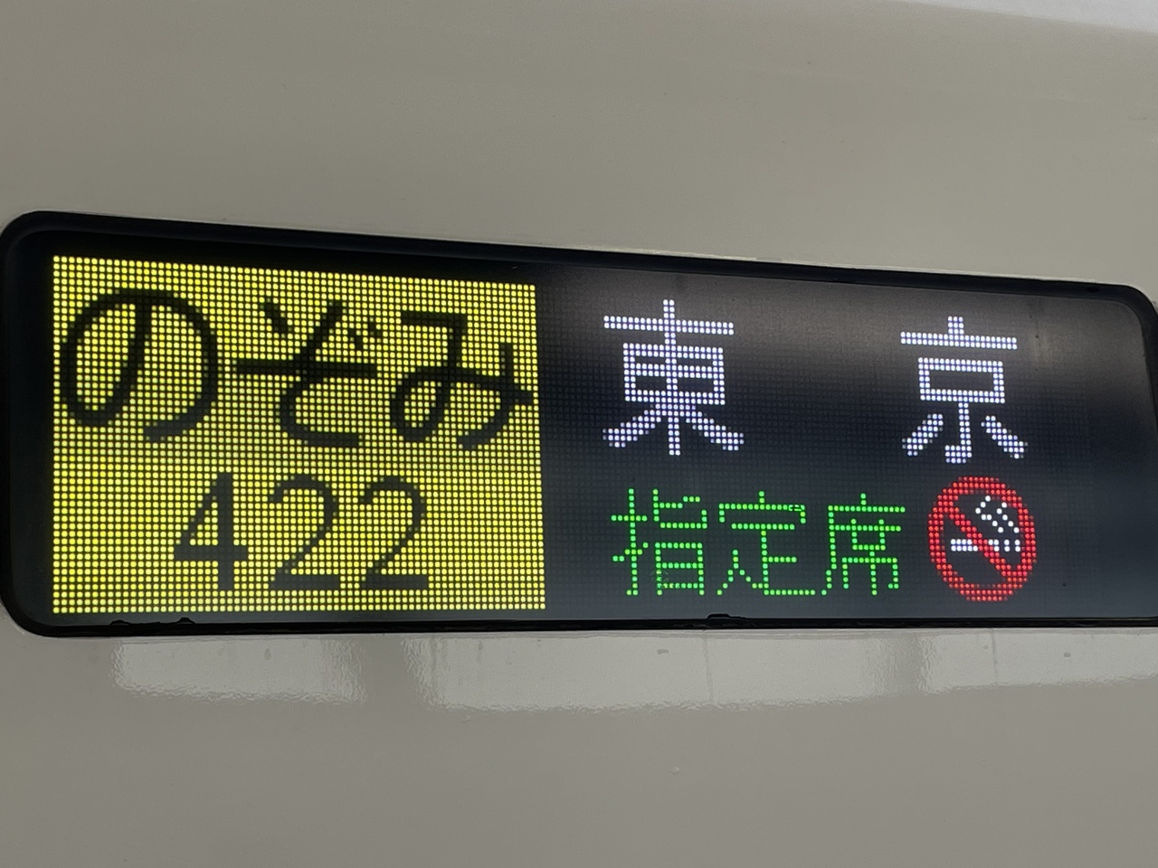 久しぶりの東海道新幹線、車内のLED情報では、かつて流れていたニュースは終了、停車駅やJR東海ほかのコマーシャルだけになっていました。新しいN700Sでは今どこを走っているが、位置情報が出ていました。