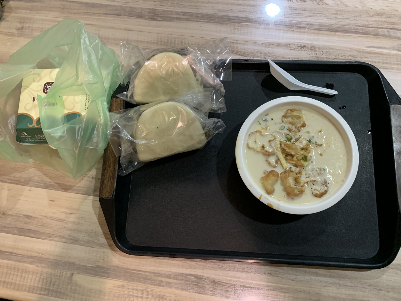 朝6時過ぎにお店に行き並びましたが、当初は誰も並んでいなかったところが湯包の持ち帰りの購入場所だったらしく、焼餅と豆乳しか購入できませんでした。