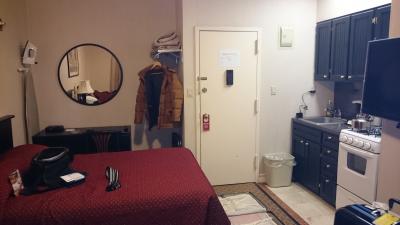 立地は最高です。観光に出かける際に利用する地下鉄の駅まで徒歩5分圏内に3駅あります。タイムズスクエアまで徒歩3分程、ブロードウェイミュージカルの会場も徒歩5~7分程でした。ミュージカルが終わるのが11時過ぎの為もあり、夜11時を過ぎても人通りが多いので安心して近くのコンビニに出かけられました。