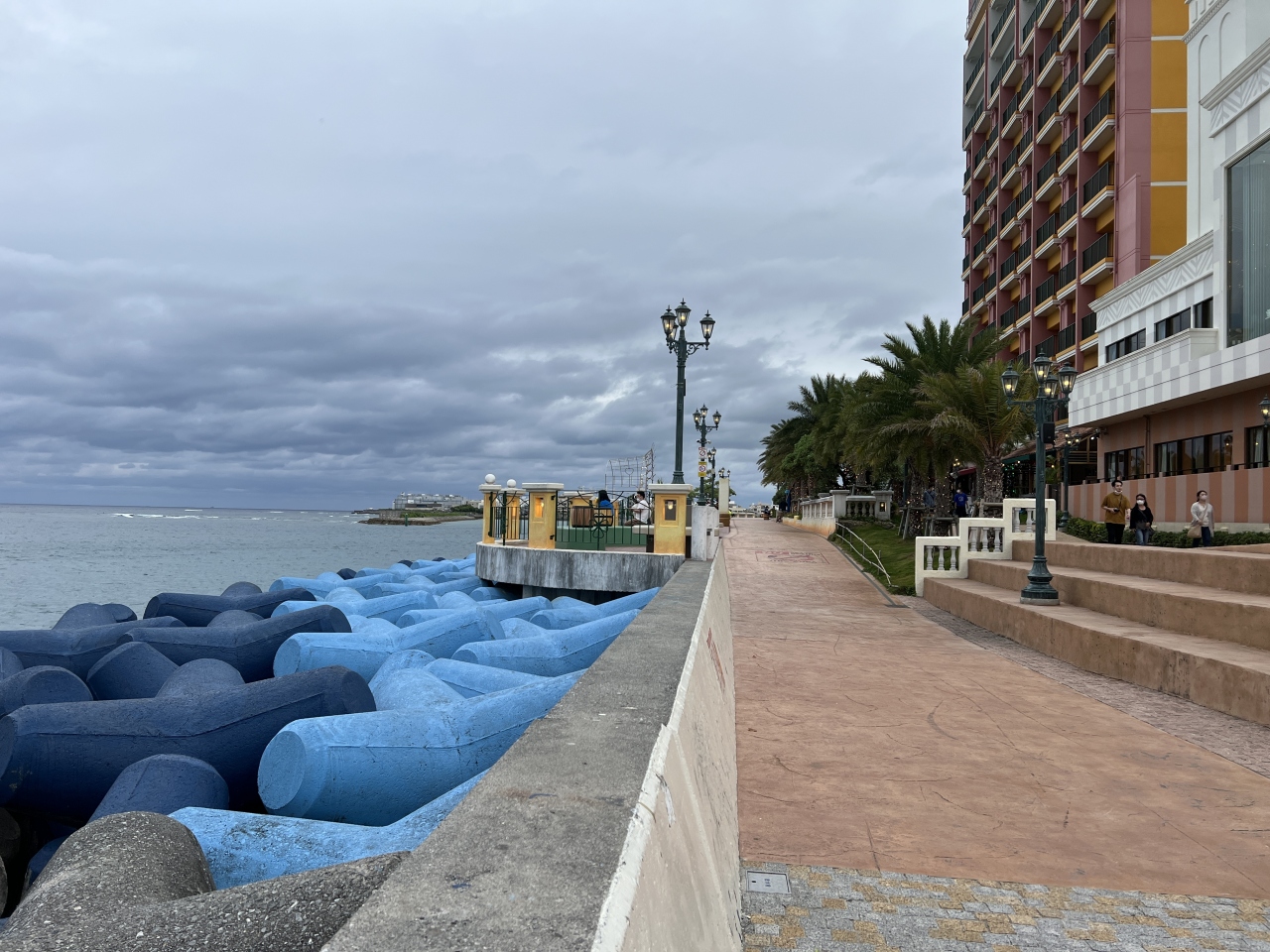 ショッピングエリアですが、購入するものもなかったので1時間程散策したものの、海岸線は工事中でした。