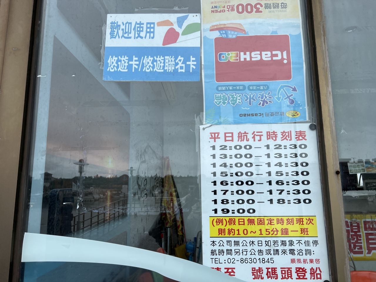 淡水漁人碼頭からフェリーで淡水老街へ向かうチケットを購入しようとチケット売り場に向かいましたが誰もおらず、電気は消えて、入り口には鍵がかかっていました。