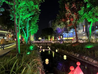 今回はクリスマスバージョンにデコレーションされていて、川在の木々もライトアップされていました。