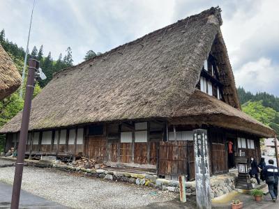 国の重要文化財に指定されている建物です。囲炉裏を囲んで当主から説明を聞き、こきりこ踊りの鑑賞後に建物内の1階から4階に展示されている民族資料を拝見させて頂きました。4階の屋根部分に茅葺きも見えました。