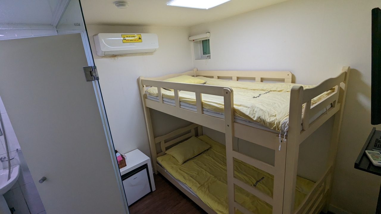 市庁駅から近くコンビニも至近。お部屋の感じとか清潔さとか安く宿泊できるからと割り切れれば良いと思います。エアコンついてますが薄っすらカビのニオイがしました。小さい冷蔵庫もついてますが開けると異臭がしました。元気な人は平気だと思います。