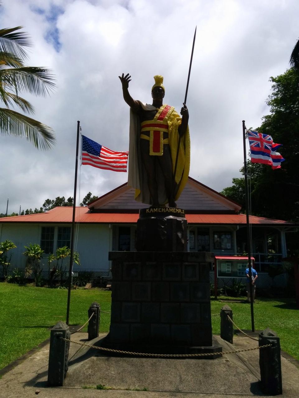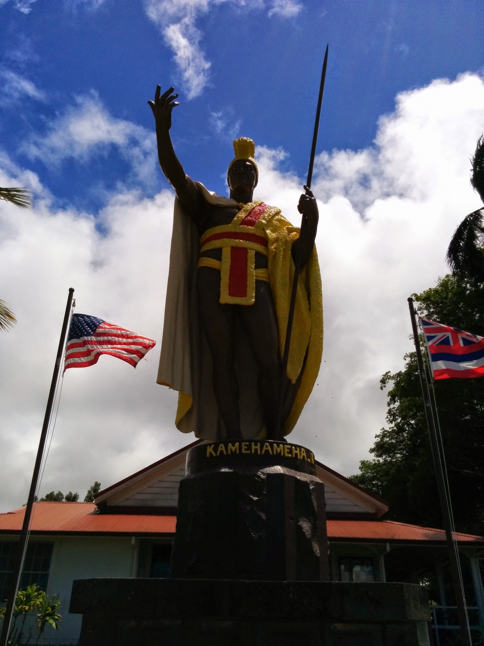 ハワイ島の北、カパアウの街にあるオリジナルのカメハメハ大王像。