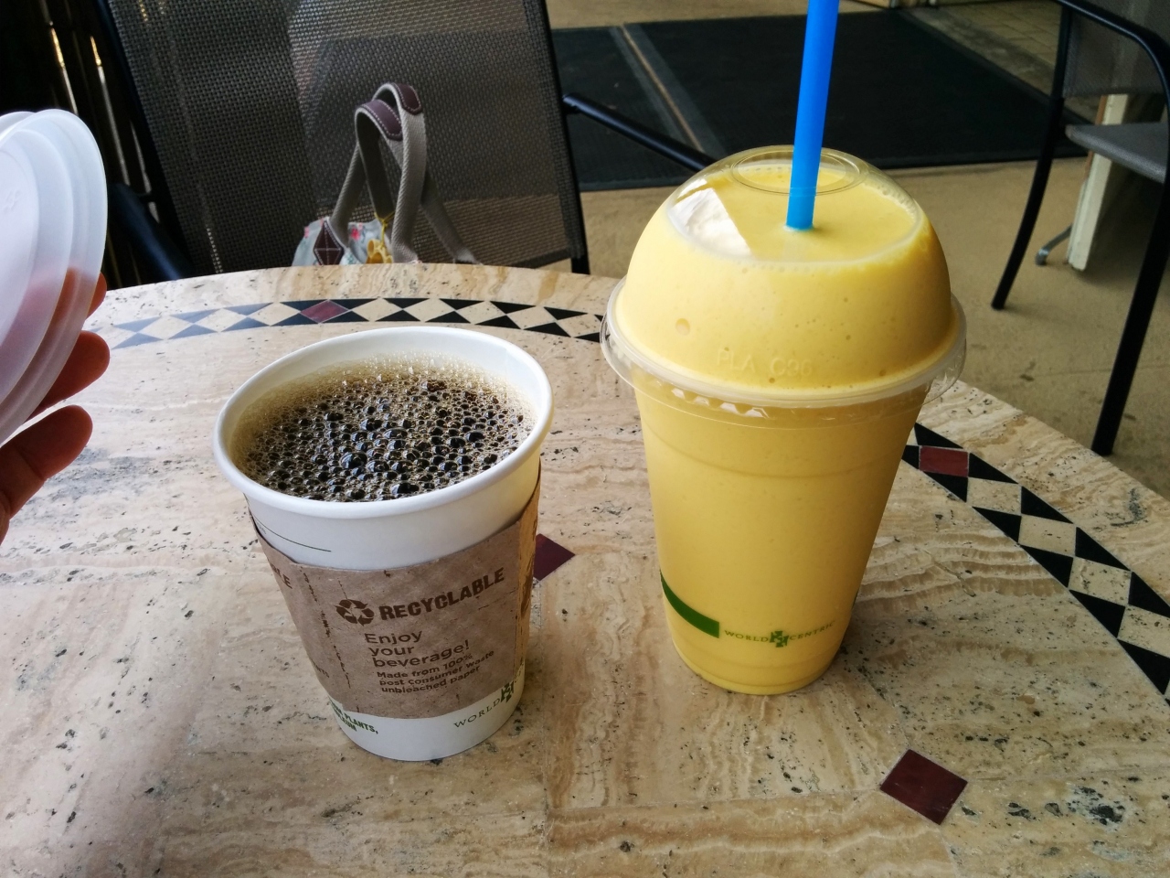 コーヒーとバナナパイナップルスムージーを飲みました。