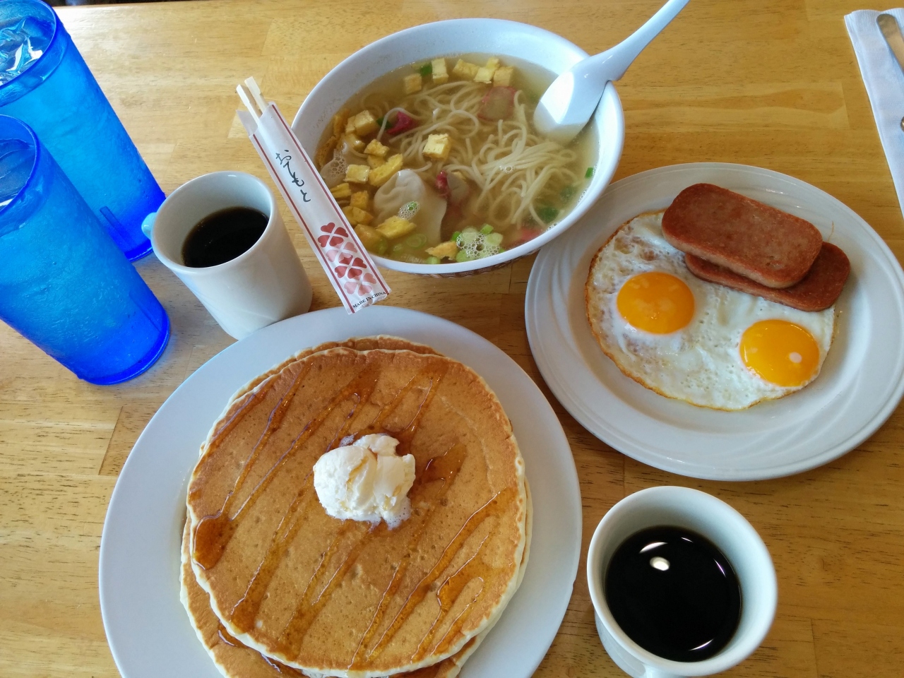 サイミンとパンケーキとコーヒーをオーダーしました。
